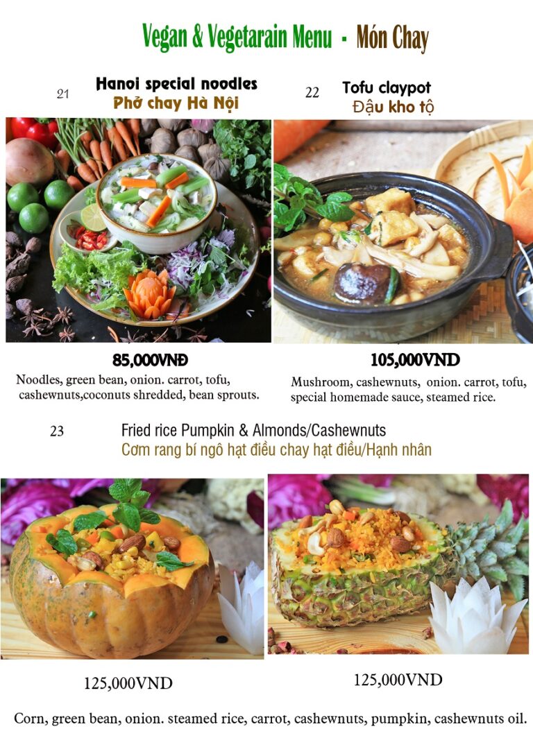 Discover the rich culinary heritage of Lakeviewsiderestaurant-cafe in Hanoi. Our menu showcases a wide range of traditional dishes, from the beloved local Foods to the Special Vietnamese Cuisine. Our Menu serving Meat – Fresh seafood – organic Vegan – Vegetarian Menu & Halal Menu. Our food flavors exotic seafood curries. Immerse yourself in a lively atmosphere and let our friendly staff guide you through an unforgettable dining experience.